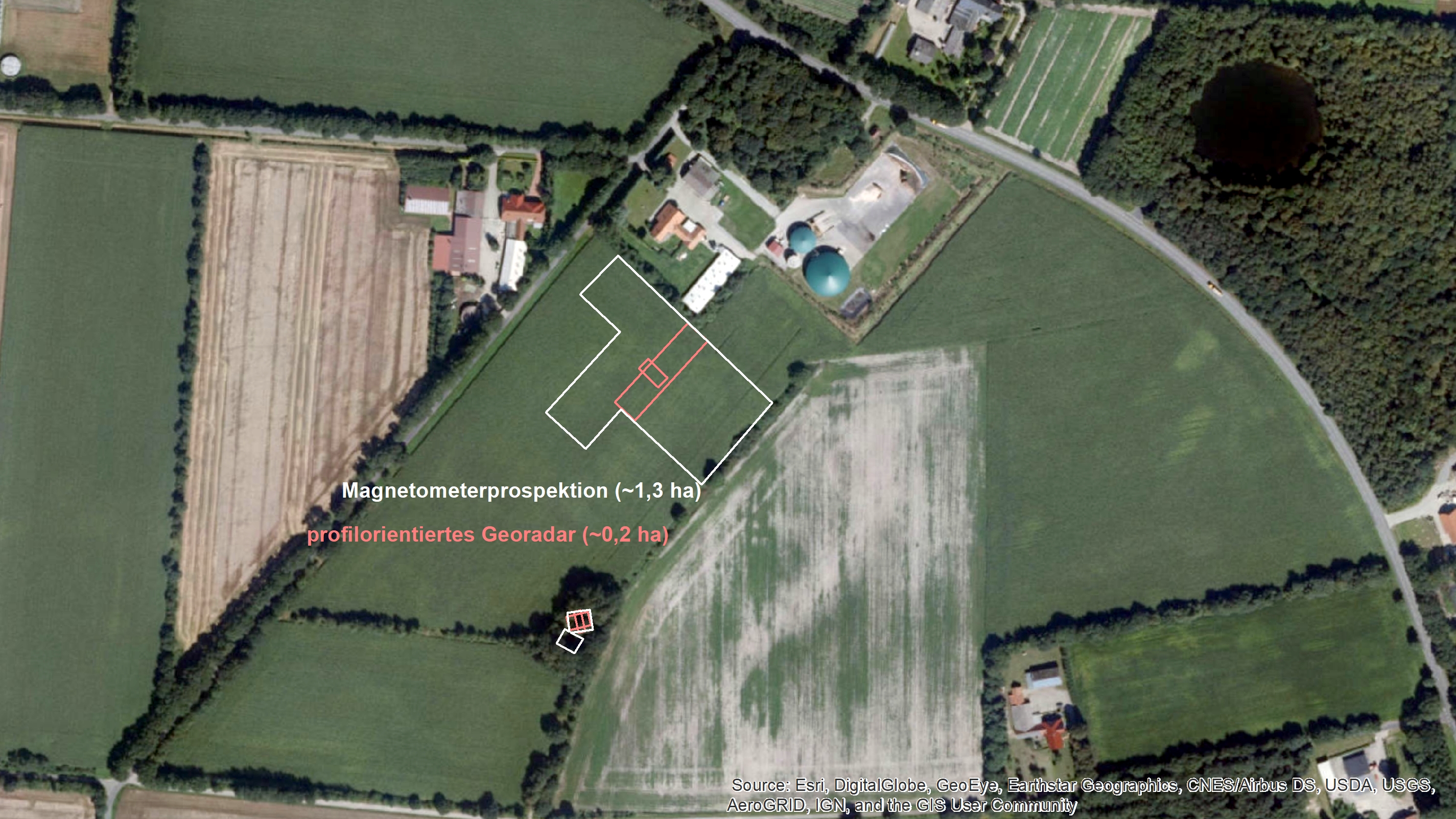 Zur Auswertung der Ergebnisse und zur Auswahl der weiter zu untersuchenden Flächenausschnitte wurden die verortbaren Visualisierungen aus der geophysikalischen Prospektion mit historischen Quellen und den fernerkundlichen Datenebenen ins GIS eingepflegt.